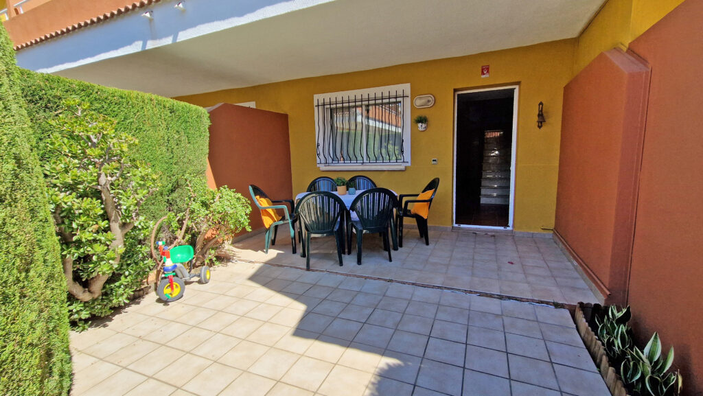 Charmante maison de ville pouvant accueillir jusqu’à 5 personnes à Denia-Els Poblets, sur la Costa Blanca, en Espagne. La confortable maison de ville El Alfar, sur deux étages, est située dans un quartier résidentiel calme avec piscine commune. La résidence sécurisée offre une place de parking pour chaque maison. La plage de galets d’Almadrava, très appréciée, est à environ 3 minutes à pied. Un supermarché, des bars et des restaurants se trouvent à environ 5 minutes, et le centre de Denia est à environ 15 minutes en voiture.